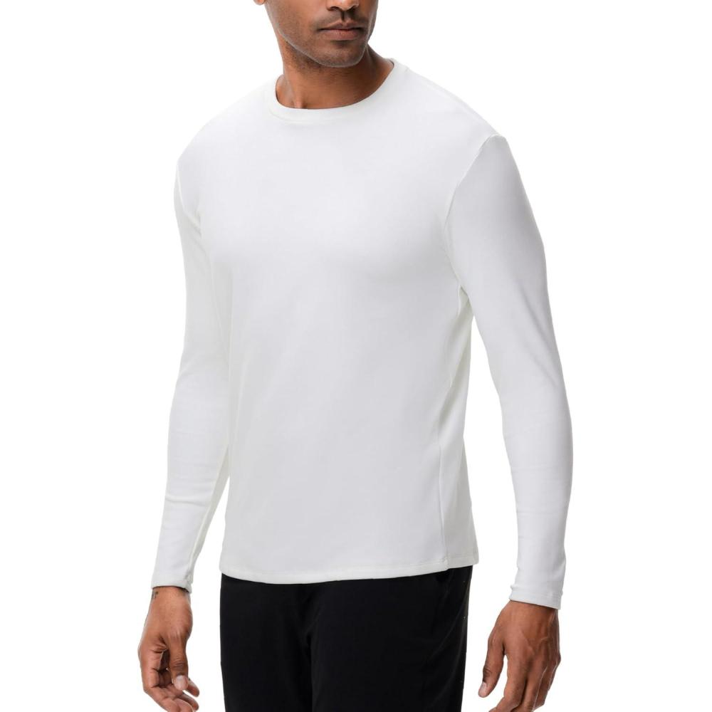 HUGE SPORTS Men’s Thermal Underwear Double-Side Fleece Fiber Long Sleeve Base Layer Top,Cold Weather Warm Undershirt for Men(White)