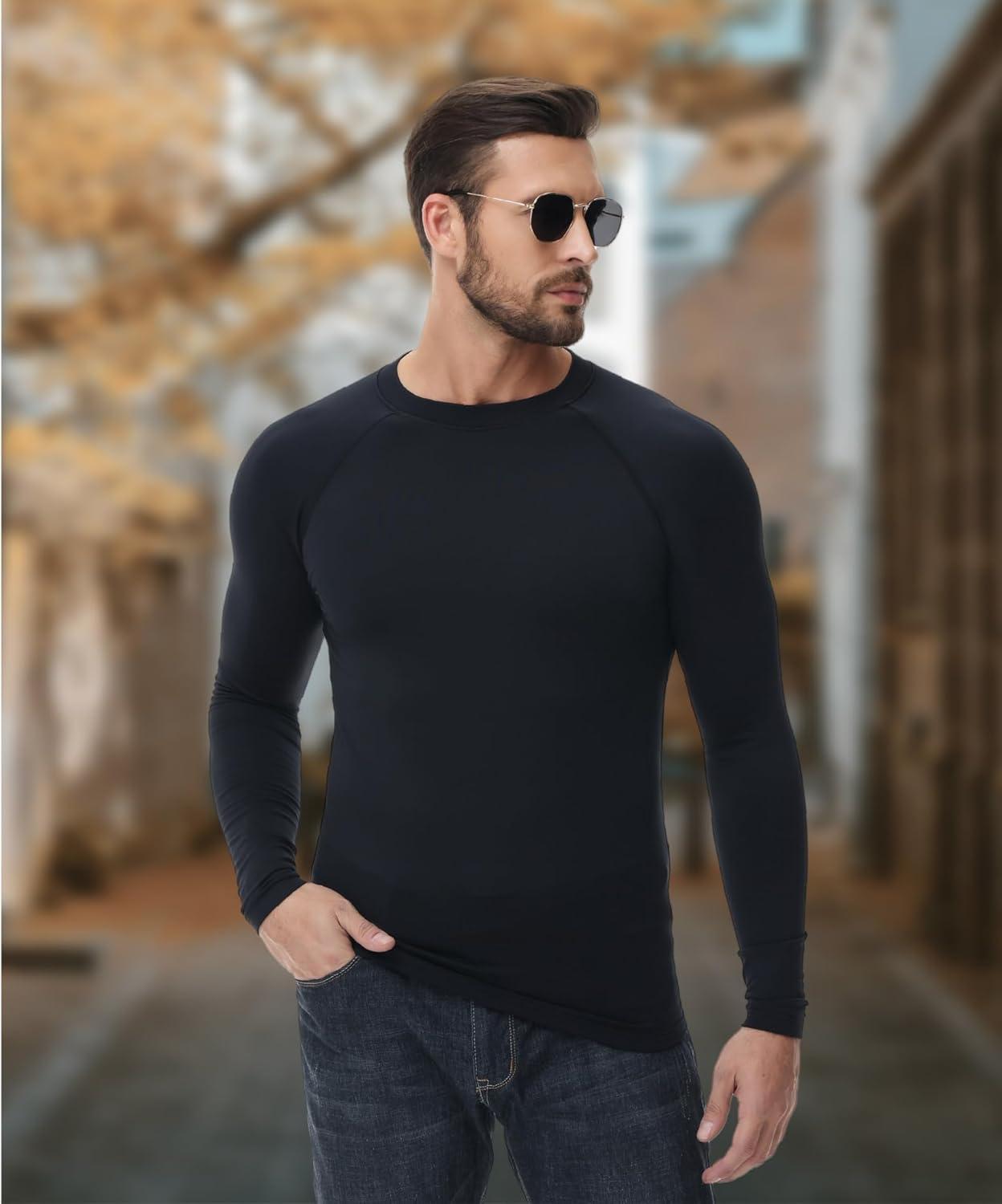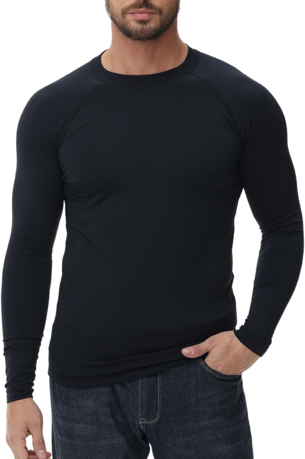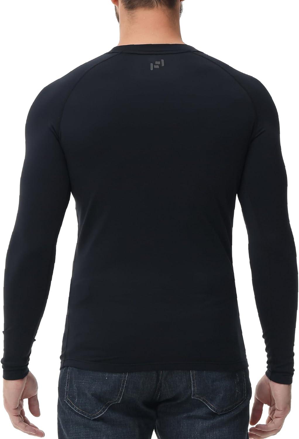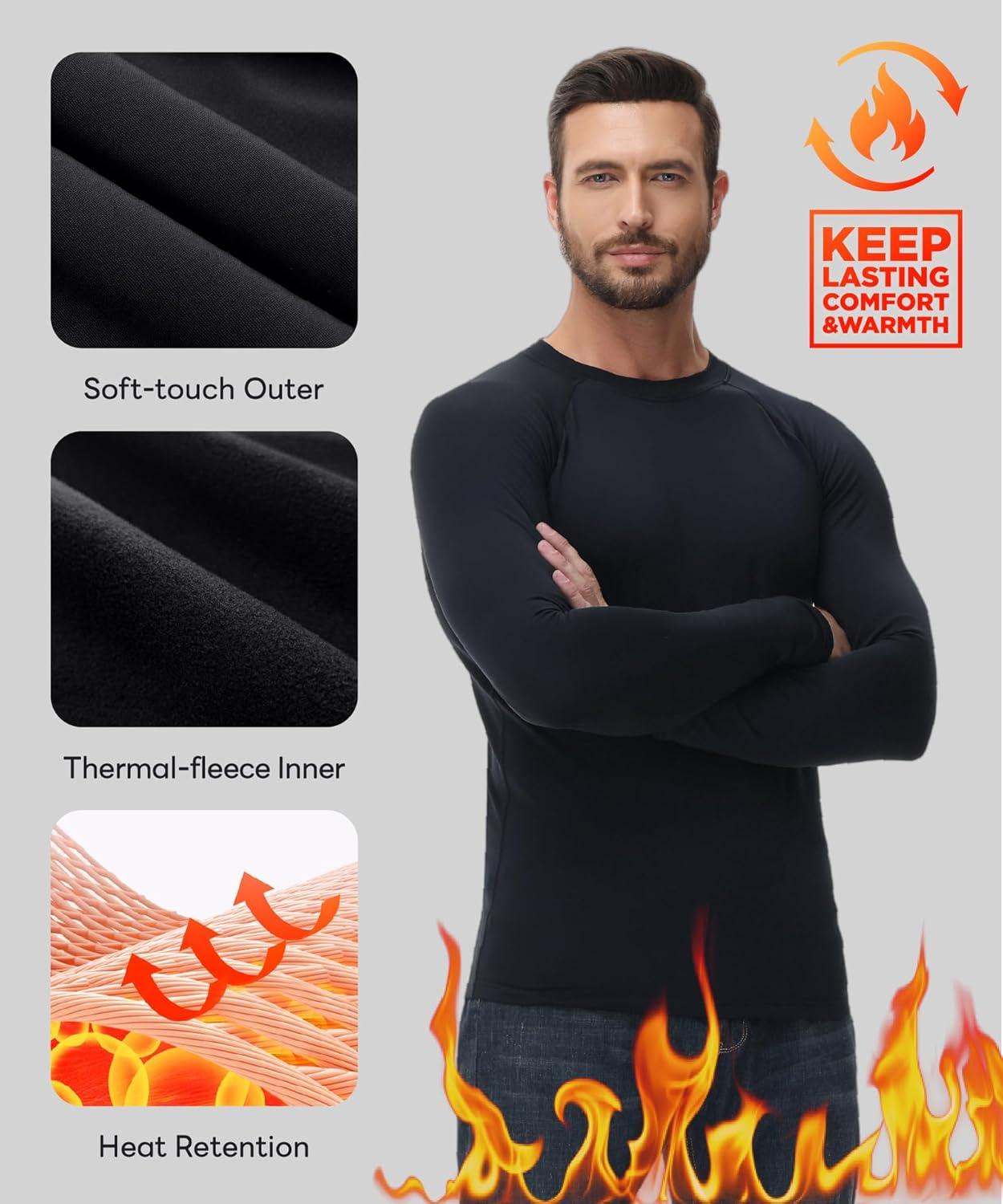 HUGE SPORTS Thermal Underwear for Men Long Sleeve Thermal Shirts Fleece Lined Compression Base Layer Thermal Underwear Top(Black 2pack Crewneck)