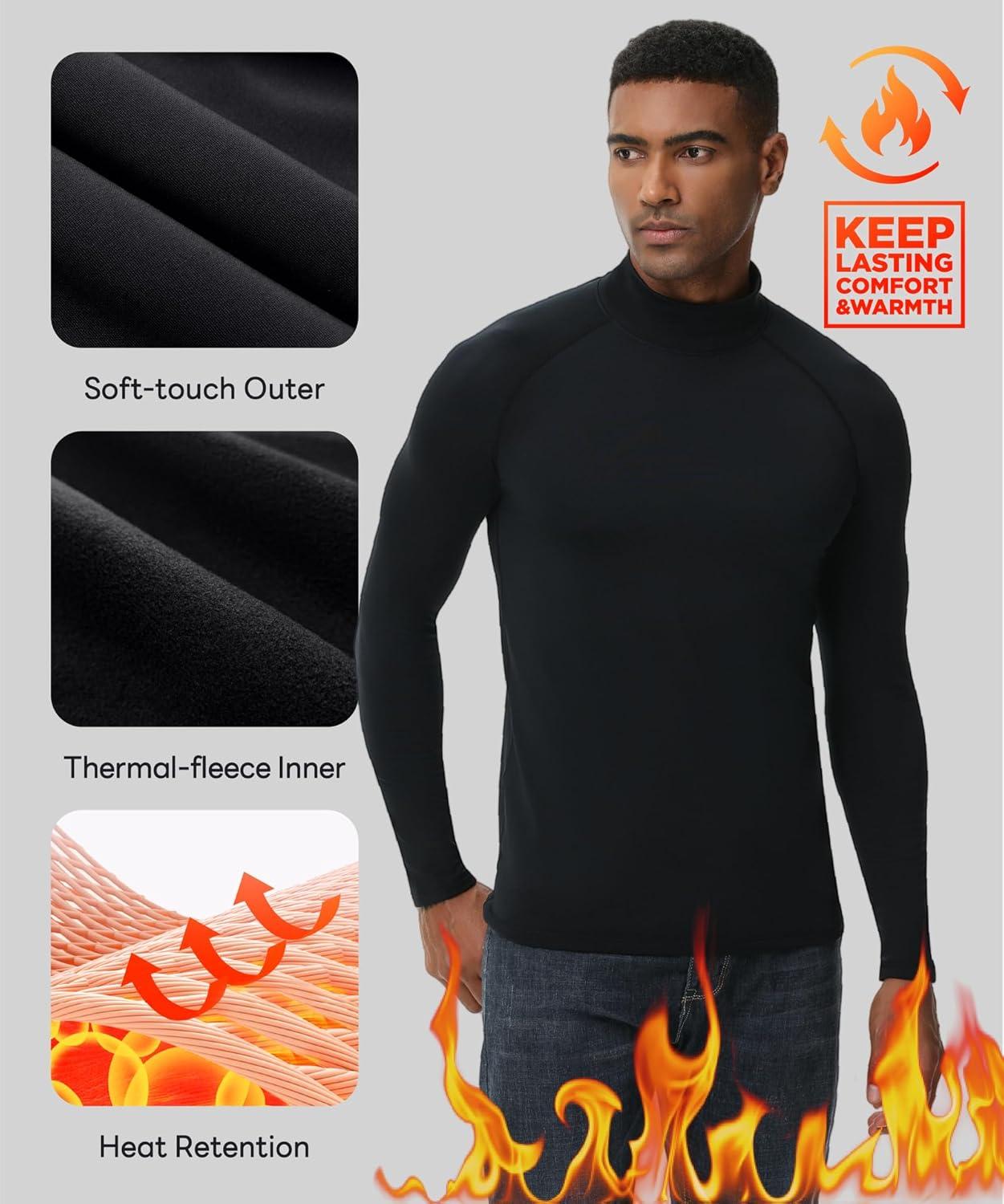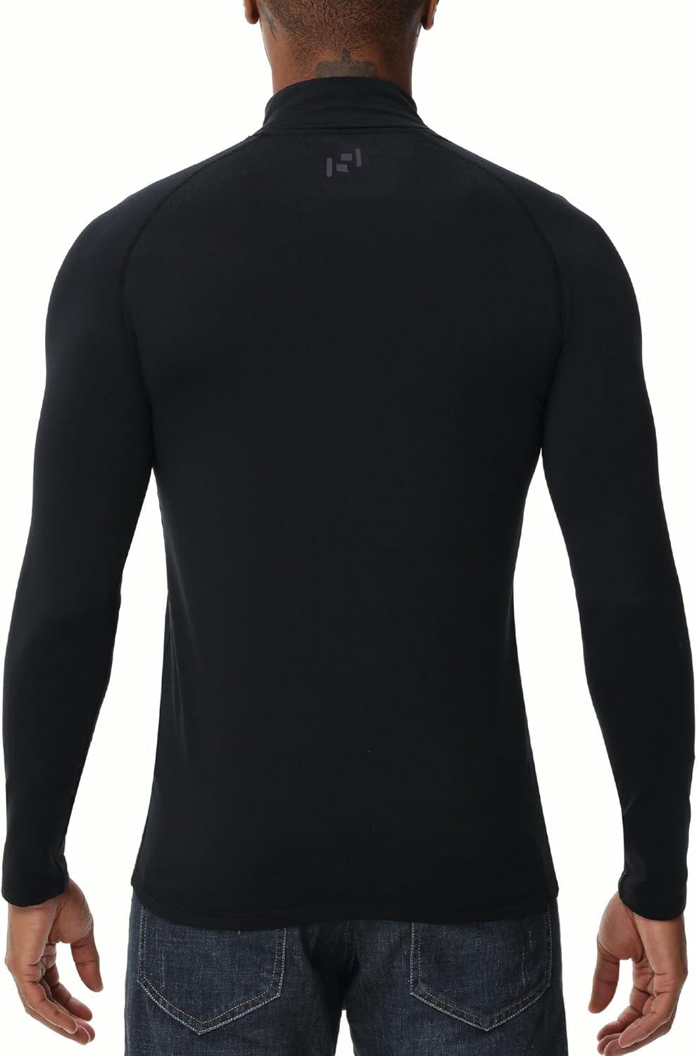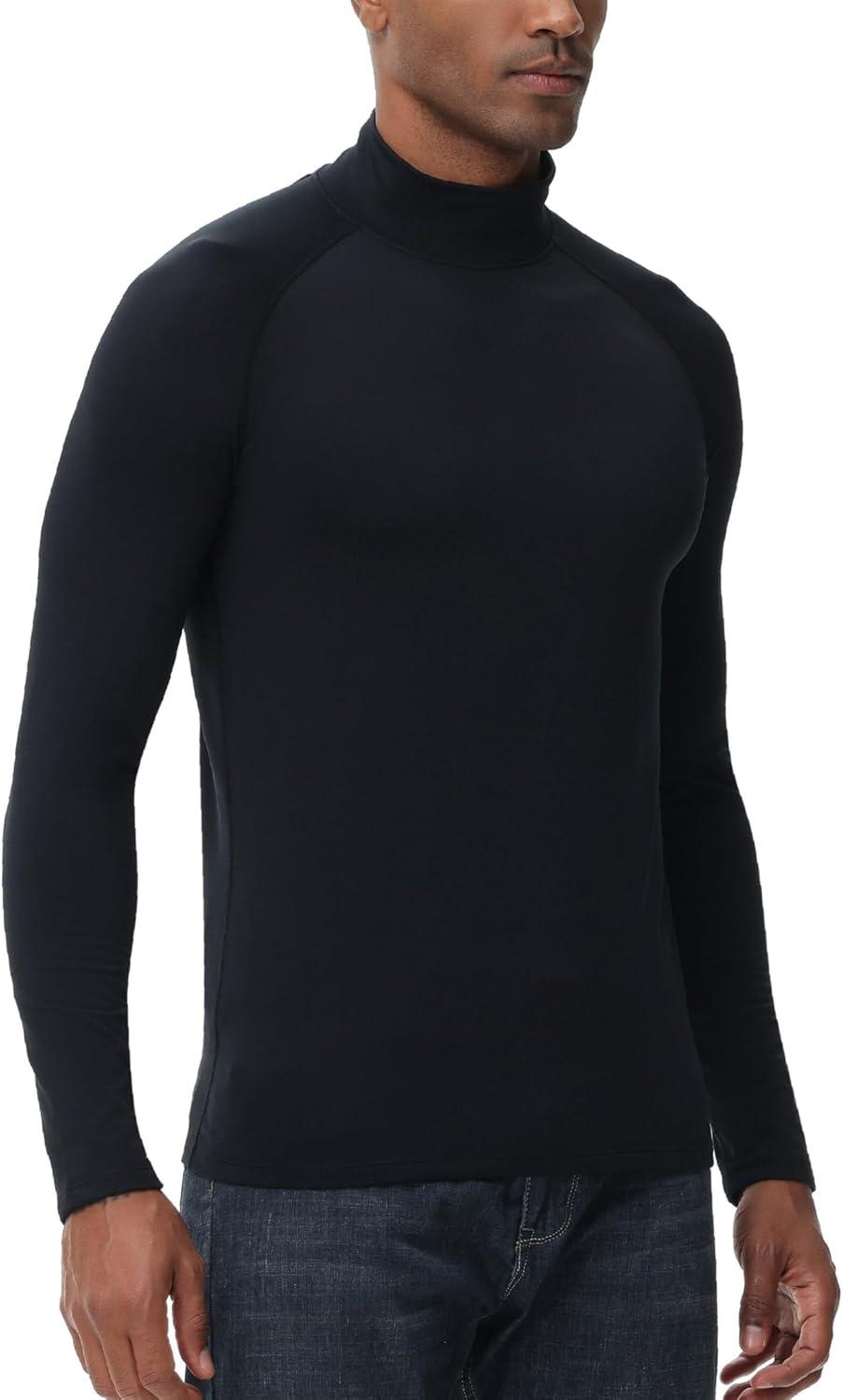 HUGE SPORTS Thermal Underwear for Men Long Sleeve Thermal Shirts Fleece Lined Compression Base Layer Thermal Underwear Top(Black (Turtlenecks))