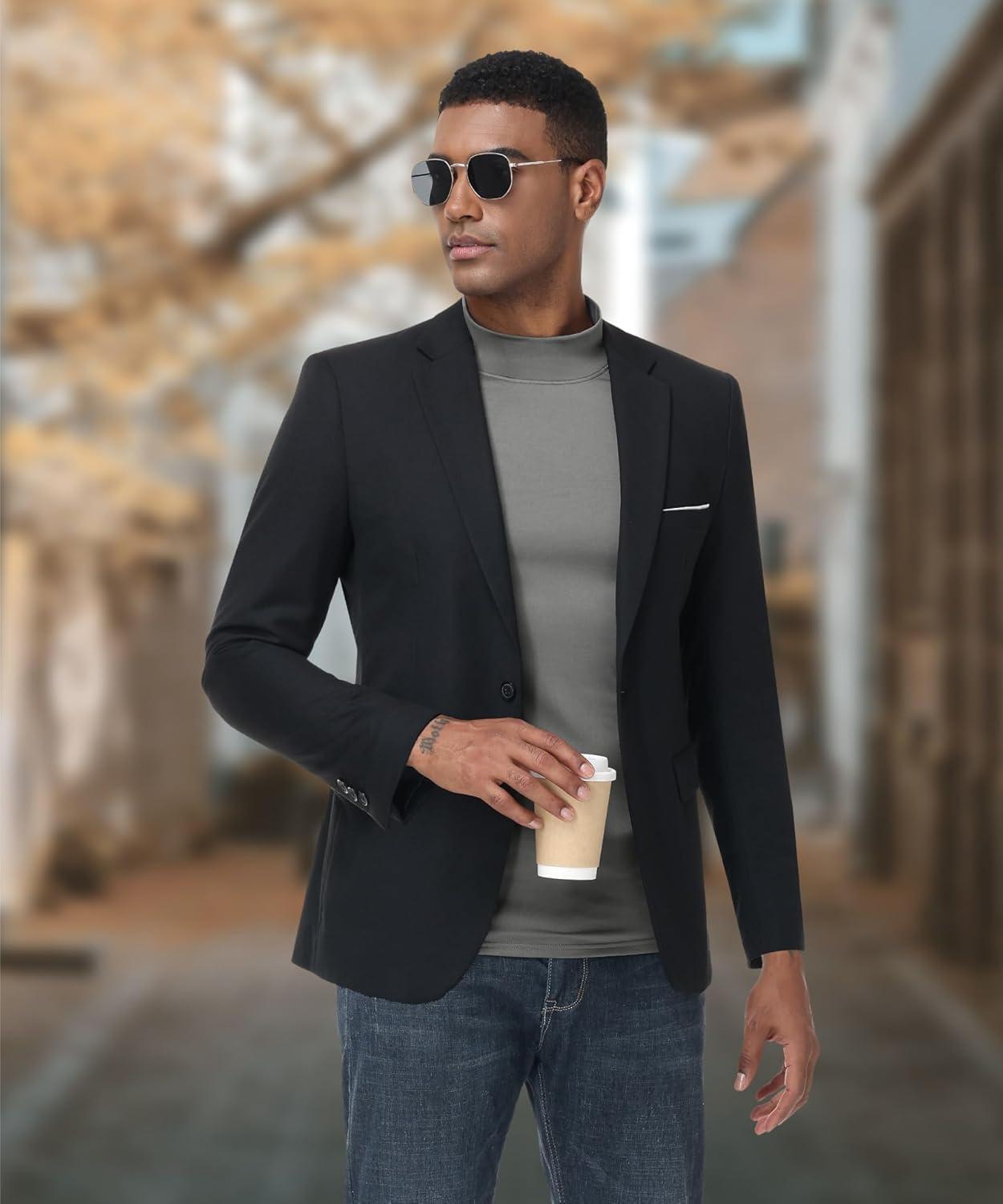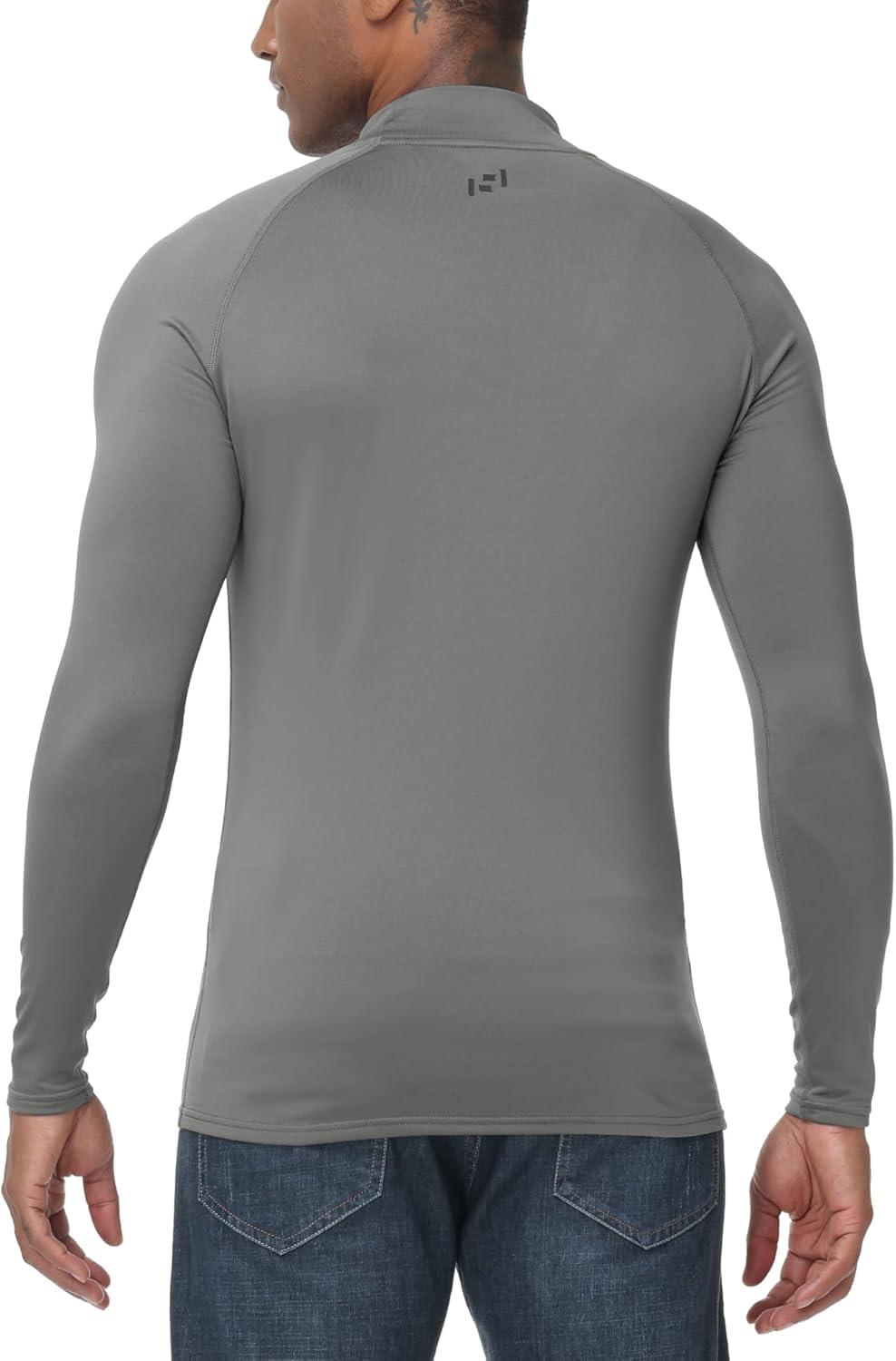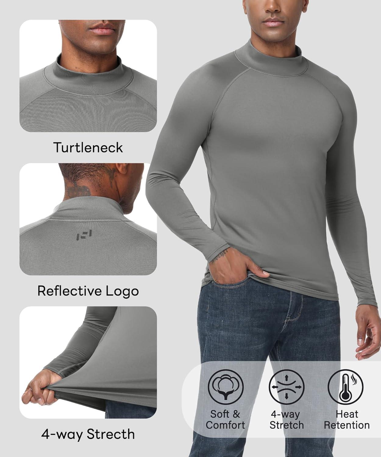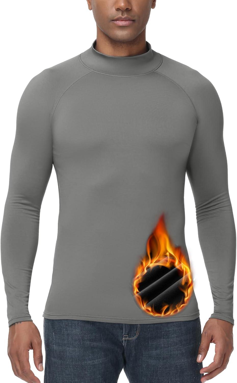 HUGE SPORTS Thermal Underwear for Men Turtleneck Long Sleeve Thermal Shirts Fleece Lined Base Layer Thermal Underwear Top(Grey Marl (Turtlenecks))