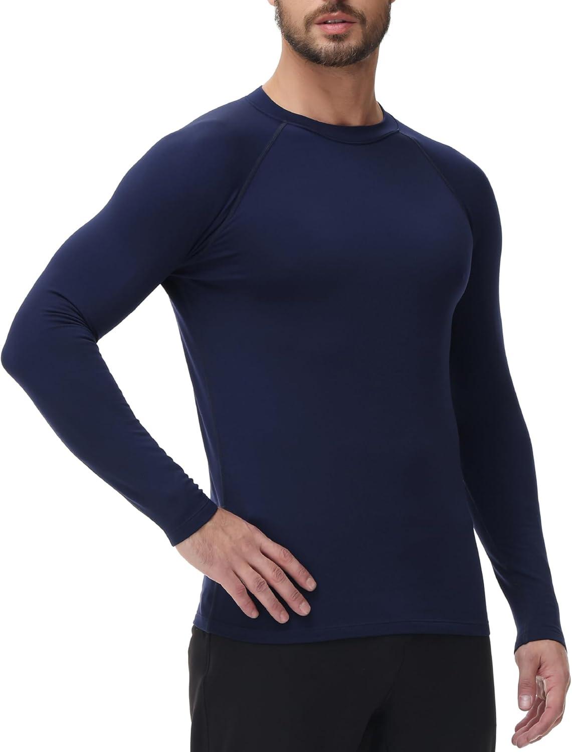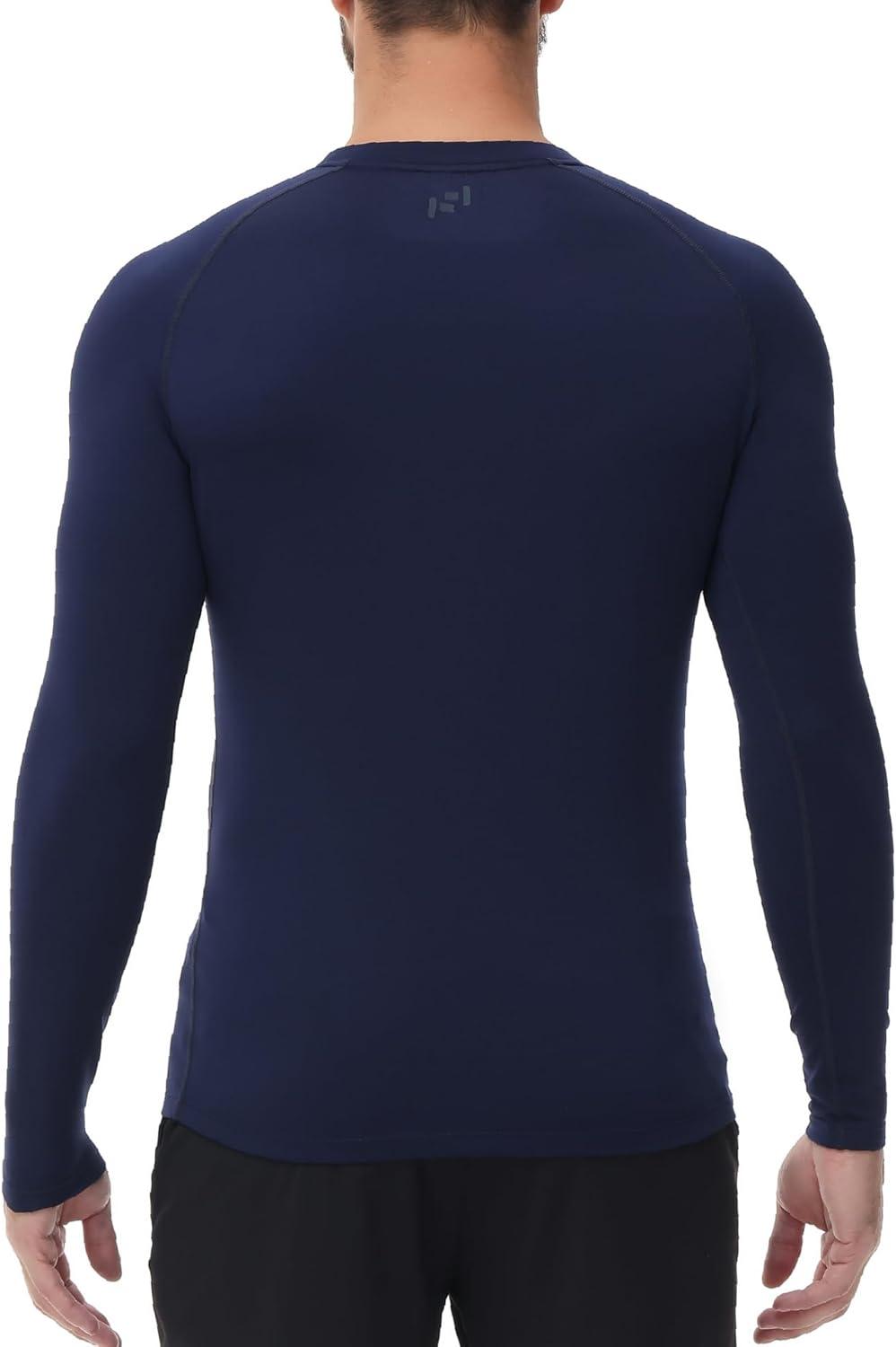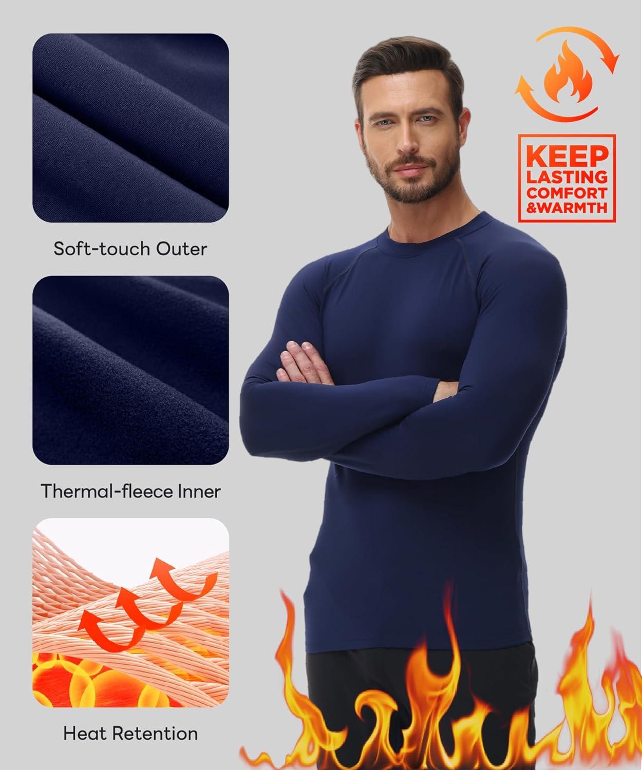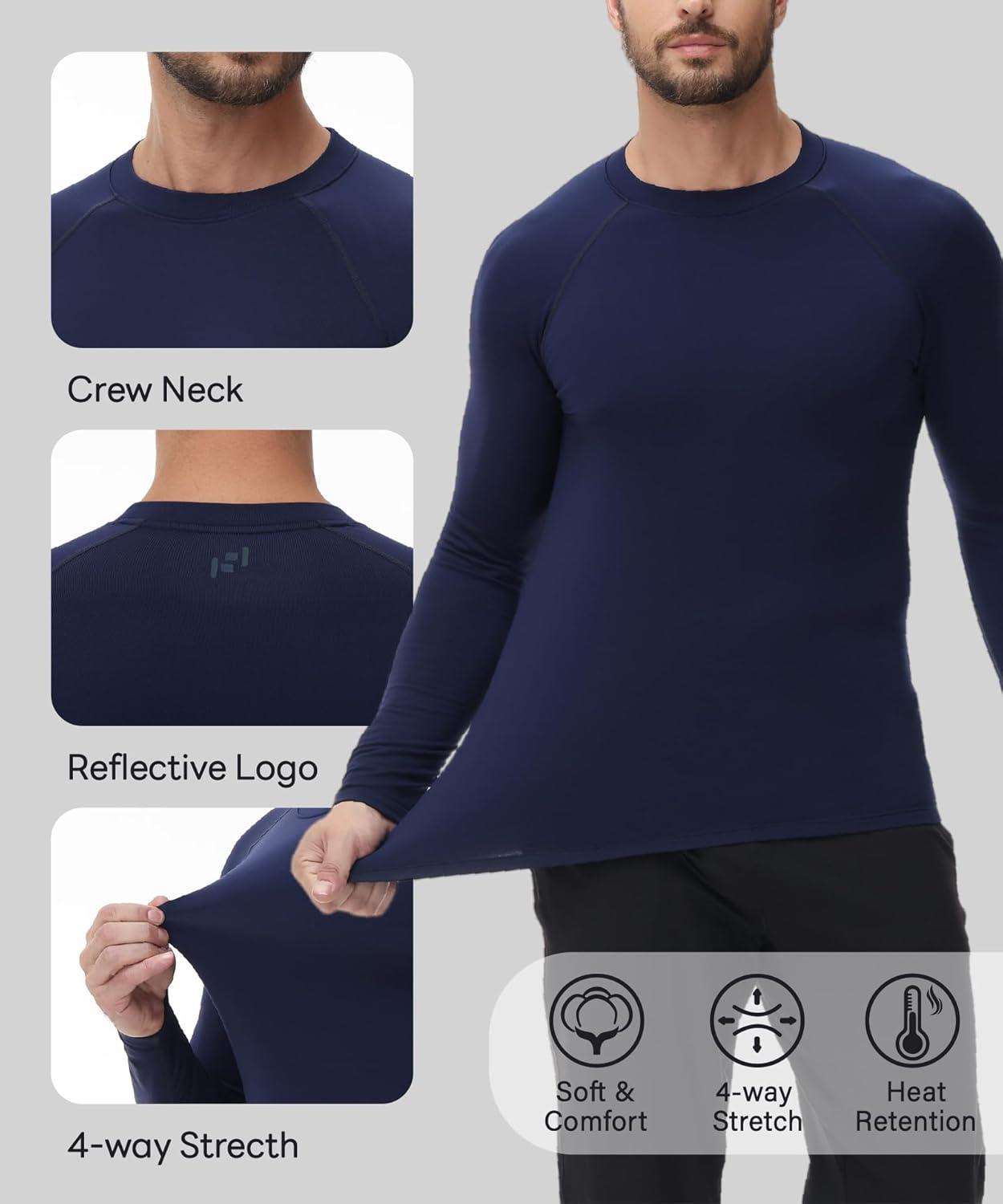 HUGE SPORTS Thermal Underwear for Men Turtleneck Long Sleeve Thermal Shirts Fleece Lined Base Layer Thermal Underwear Top(Navyblue (Crewneck))